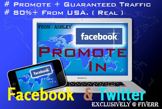 js-gig-main-desc ">Hello. Facebook and Twitter are the most common, most using Social Networks in Modern era. This Service is based on those 2 Social Networks and I will Promote your website, Blog or any other Page in Facebook and Twitter using my own Accounts Manually.I guarantee about the Traffic and they are from hundreds of countries with unique IP s, so You can check the following details through Google Analytics,