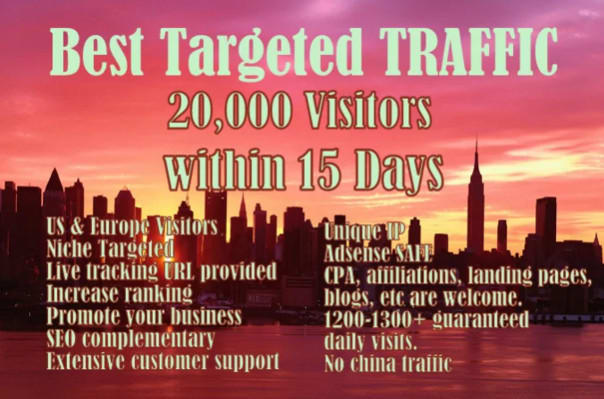 js-gig-main-desc ">I will drive 20,000+ Best Targeted Traffic to your Website, Blog or any link , E book Company, Affiliate links , CPA url s, Landing pages,, Channel, Amazon, E bay, Service, Fashion, Fund raising , Weight loss programs, Message Or Anything…((( Just think about your Websίte, It’s very important uncommon appearance of your site. If you want to promote in the wệb which business or product or services or affiliates , Should be organized your pages properly, Eg: exact title; description, body, keywords which your focus keywords.)))