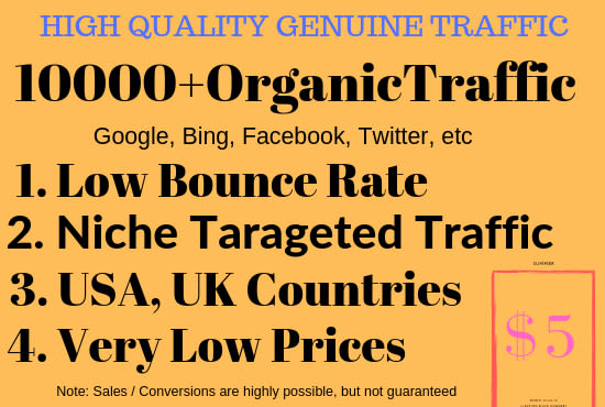 You may receive sales or opt-ins but they CANNOT be guaranteed, as well as specific bounce rate \ time spent, and ranking. We can't control visitors' actions.